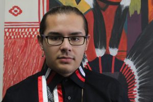 On a chilly October evening at UW-Madison’s Dejope Residence Hall — named for the Ho-Chunk term for “four lakes” — Gudino and three fellow students surround a large drum, taking turns beating the drum and singing powwow songs from area tribes. The four sit in the center of the large room as dancers in tribal regalia circle them in dance. It’s a celebration of Indigenous Peoples’ Day, which Native Americans and their advocates believe should replace Columbus Day. At Gudino’s left sits Michael Williams, 21, a leader of campus Indigenous student organization Wunk Sheek and an organizer of the evening’s festivities.
